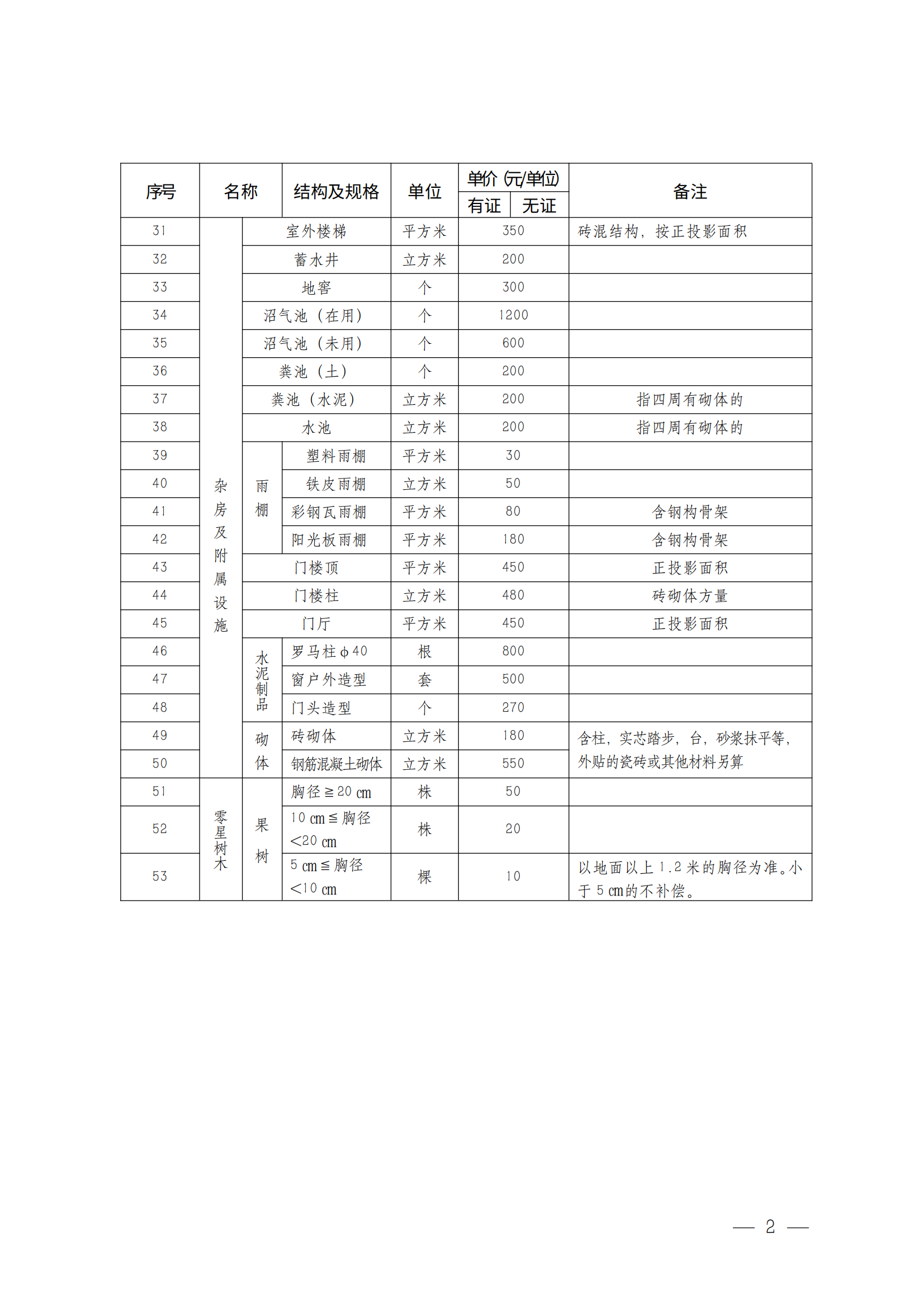林木補償費(元/畝) |