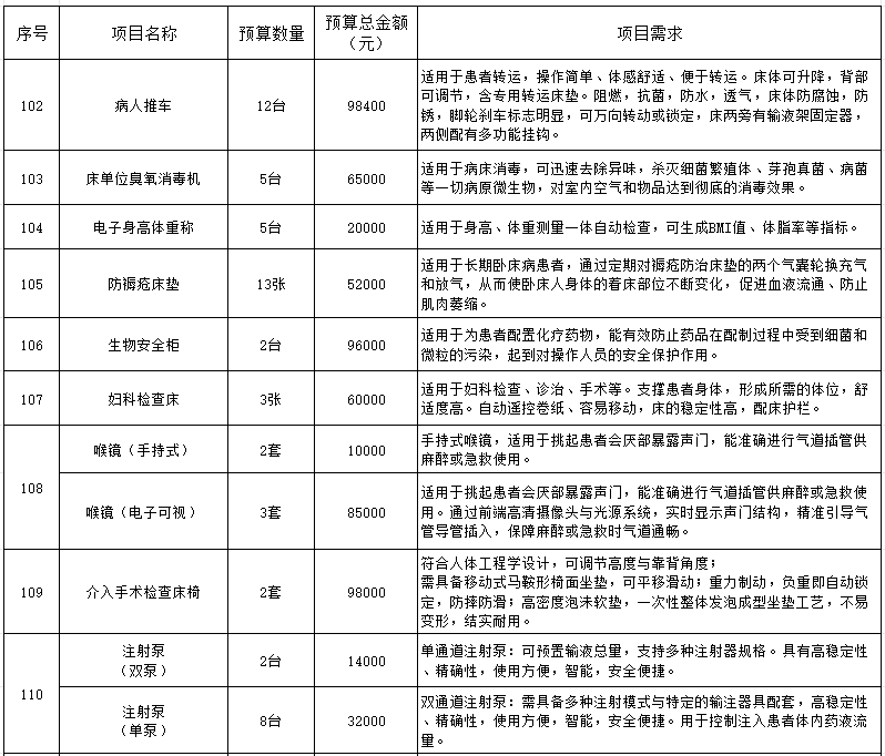 我院計劃采購以下設備采購項目,現予以公示,歡迎各供應商推薦相應產品: