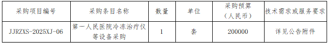 ******醫院冷凍治療儀等設備采購的潛在供應商應在招標代理機構獲取詢價文件及其它資料。并于2025年9月29日15點00分(北京時間)前提交響應文件。
